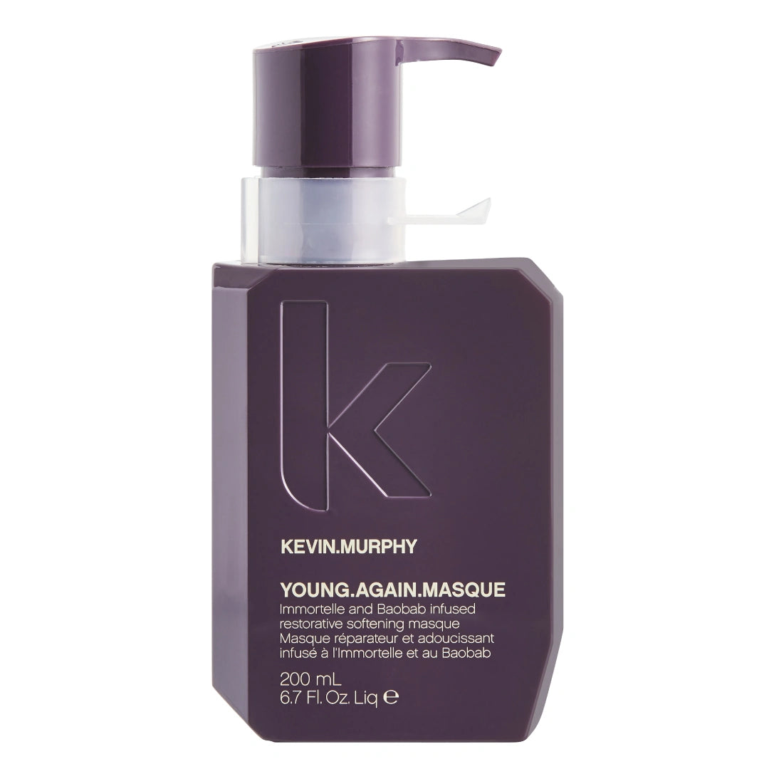Zmiękczająca i odbudowująca włosy maska od Kevin Murphy z wyciągiem z kwiatu immortelle oraz baobabu. Przeciwdziała trzem najważniejszym czynnikom, które mają wpływ na zbyt szybkie starzenie się włosów – środowisko naturalnego, gospodarka hormonalna oraz chemiczne uszkodzenia. Maska zawiera wysokie stężenie substancji czynnych. Powinna być zawsze stosowana przed odżywką Young Again Rinse w celu uzyskania najlepszych efektów.